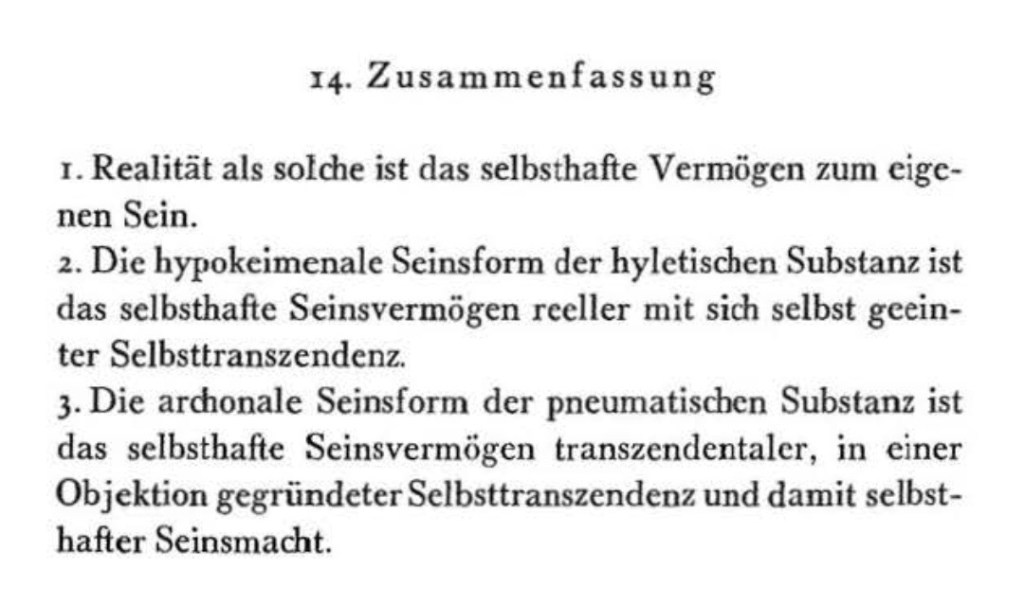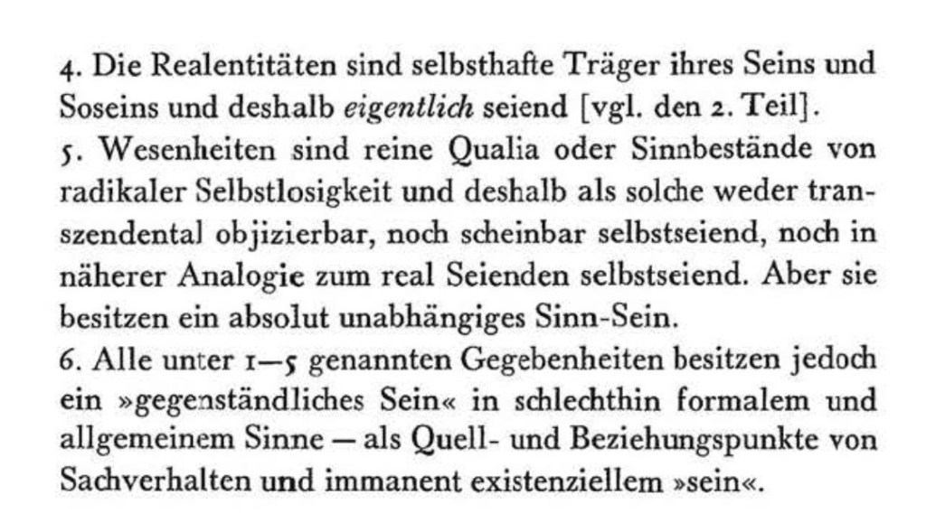 This is only the beginning of an ongoing project, and this “Supplements” only treats a few of her works–there is more, and better!, instances of Versunkenheit in Conrad-Martius and her many other works. For example, in “Die Transzendentale und die Ontologische Phänomenologie,” Conrad-Martius writes “Aber anstatt das wirkliche Sein hypothetisch einzuklammern und dadurch die Welt (in der Reduktion) der wirklichen Wirklichkeit enthoben zu sehen, wird nunmehr das wirkliche Sein der Welt hypothetisch gesetzt und sie dadurch mit der selbsthaften Eingesenktheit ins Sein vorgestellt.” This represents another instance of immersion taking a central role in her method and the resulting doctrine.