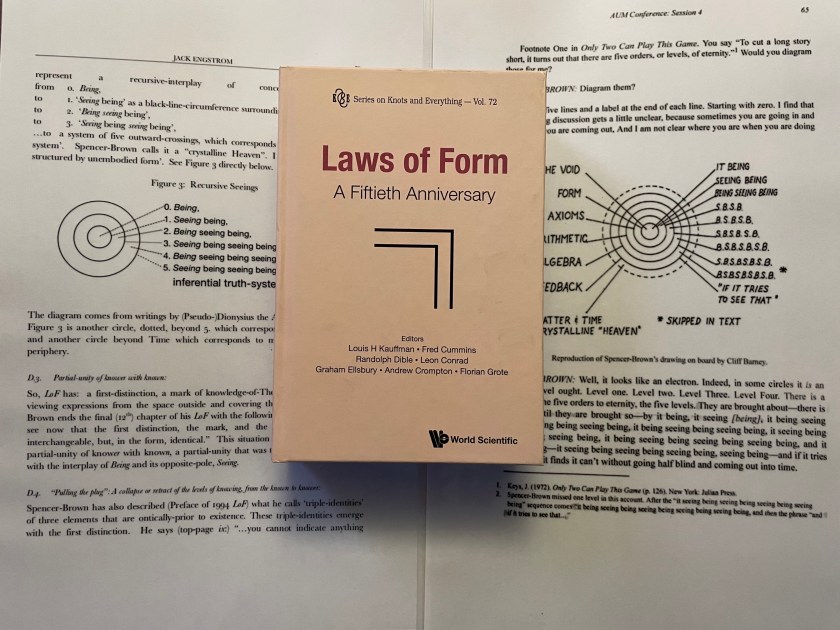 Laws of Form—A Fiftieth Anniversary. Knots and Things. Edited by Louis H. Kauffman, Fred Cummins, Randolph Dible, Leon Conrad, Graham Ellsbury, Andrew Crompton, and Florian Grote. January 18, 2023 (World Scientific)